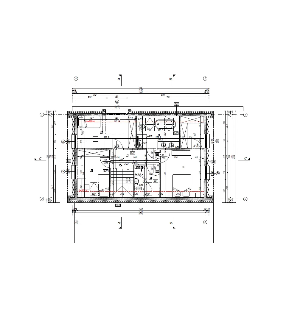 - Ściany: pustaki z betonu komórkowego