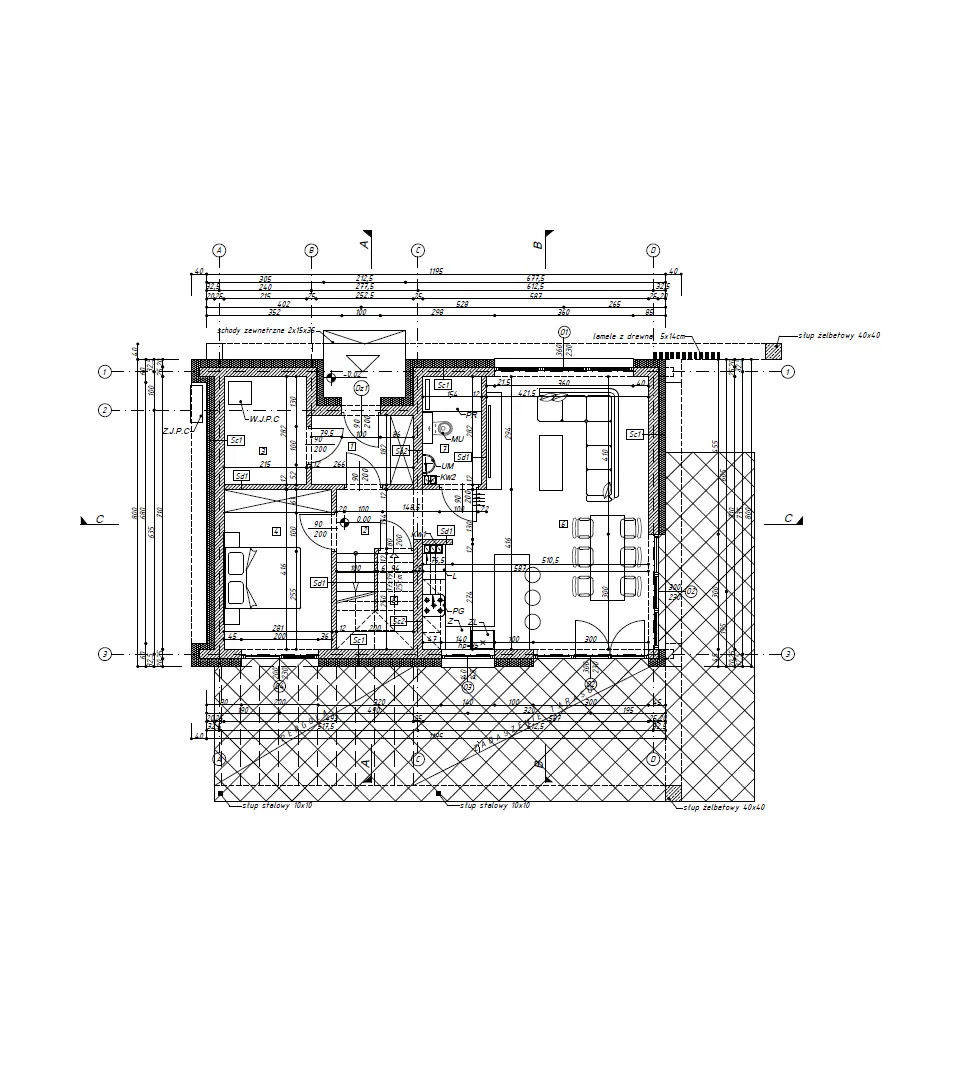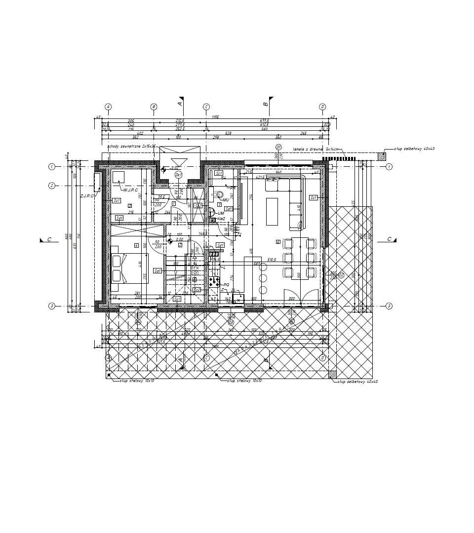 - Dach: drewniana konstrukcja, dachówka betonowa, podbitka w cenie, dach dwuspadowy