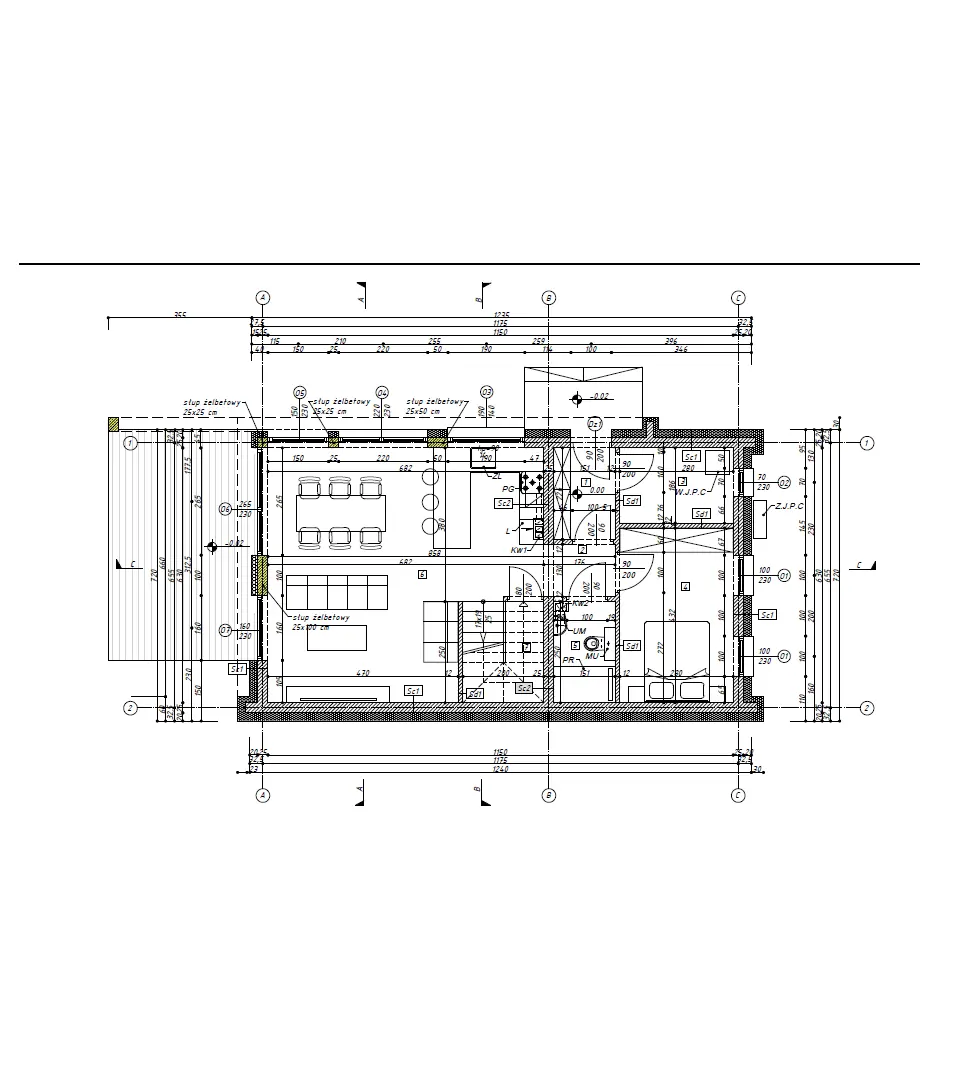 - Ściany: pustaki z betonu komórkowego