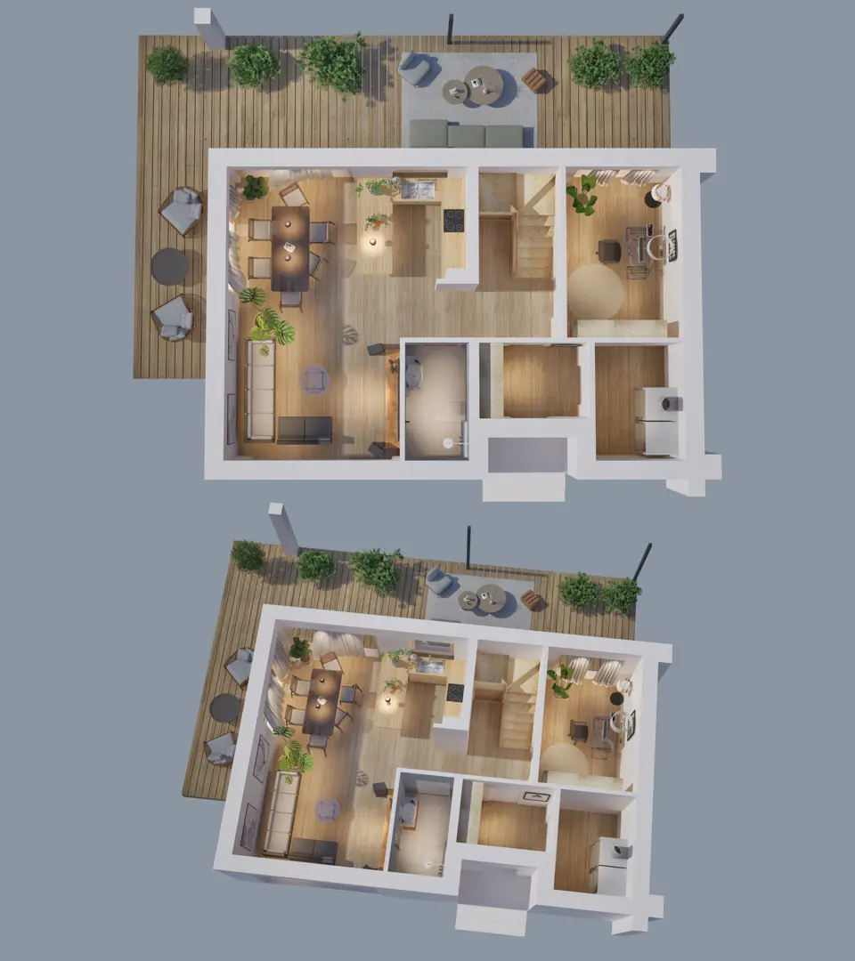 Nota prawna: Informacje dotyczące wizualizacji oraz opisu nieruchomości podane są przez właściciela, mają charakter wyłącznie informacyjny i mogą podlegać aktualizacji. Oferta dotycząca nieruchomości stanowi zaproszenie do rokowań zgodnie z art. 71 Kodeksu Cywilnego i nie stanowi oferty określonej w art. 66 i następnych KC. Niniejsze wizualizacje mają charakter poglądowy. Wygląd budynków oraz zagospodarowanie terenu mogą nieznacznie ulec zmianie na etapie realizacji inwestycji. Zmianie nie ulegną istotne cechy świadczenia oraz funkcjonalność budynków.